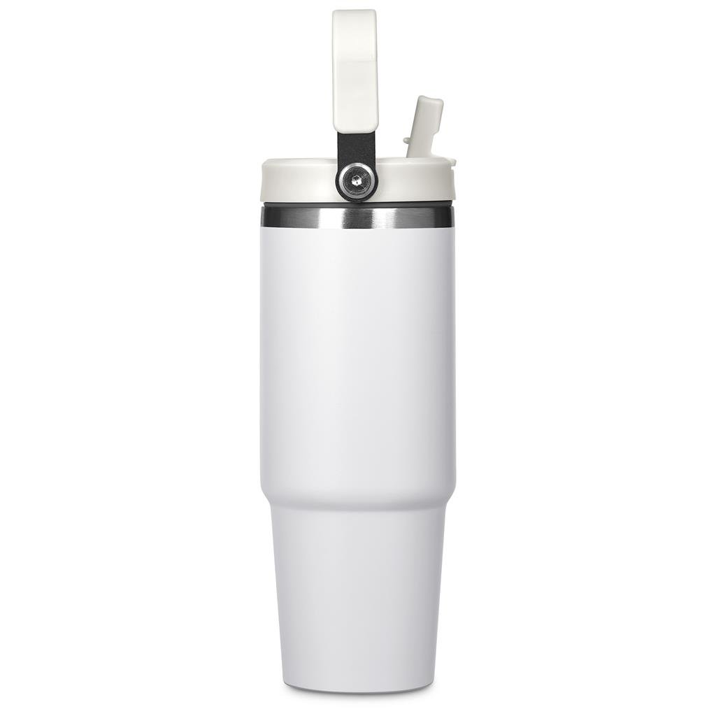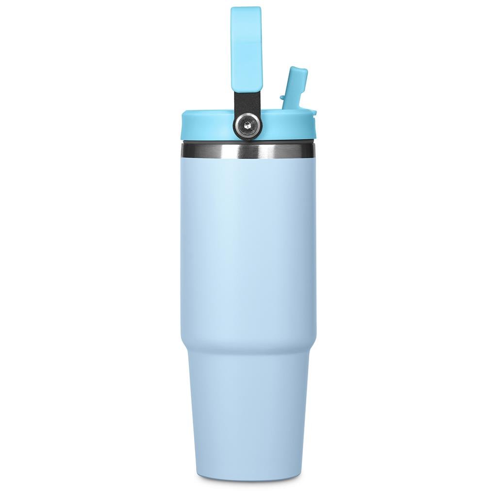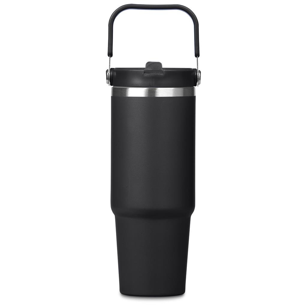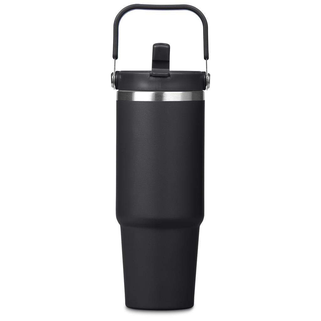 Carry your beverage care-free by the handle of this substantial 900ml tumbler. The stainless steel vacuum construction will keep your chilled beverage cold for hours. The lid has a built-in flip straw, which makes it easy to sip from regularly to stay hydrated. It’s a secure, screw-on, broad-mouth lid, so you can easily load ice into the tumbler. The tapered bottle base is designed to fit into a vehicle drinks holder.
