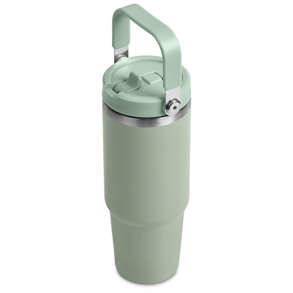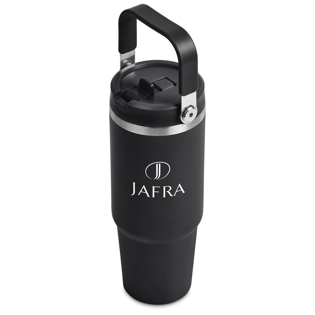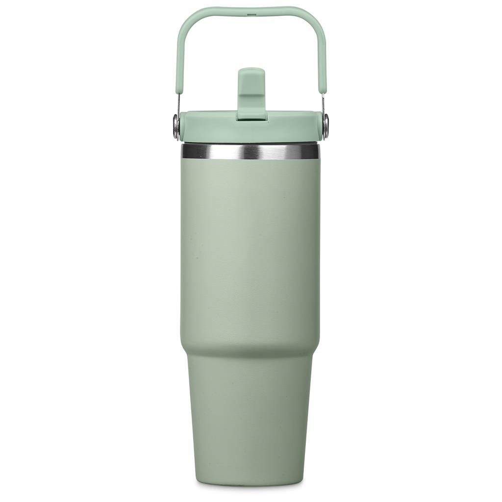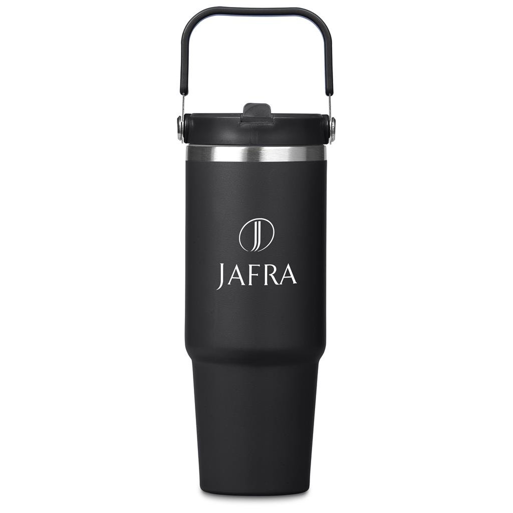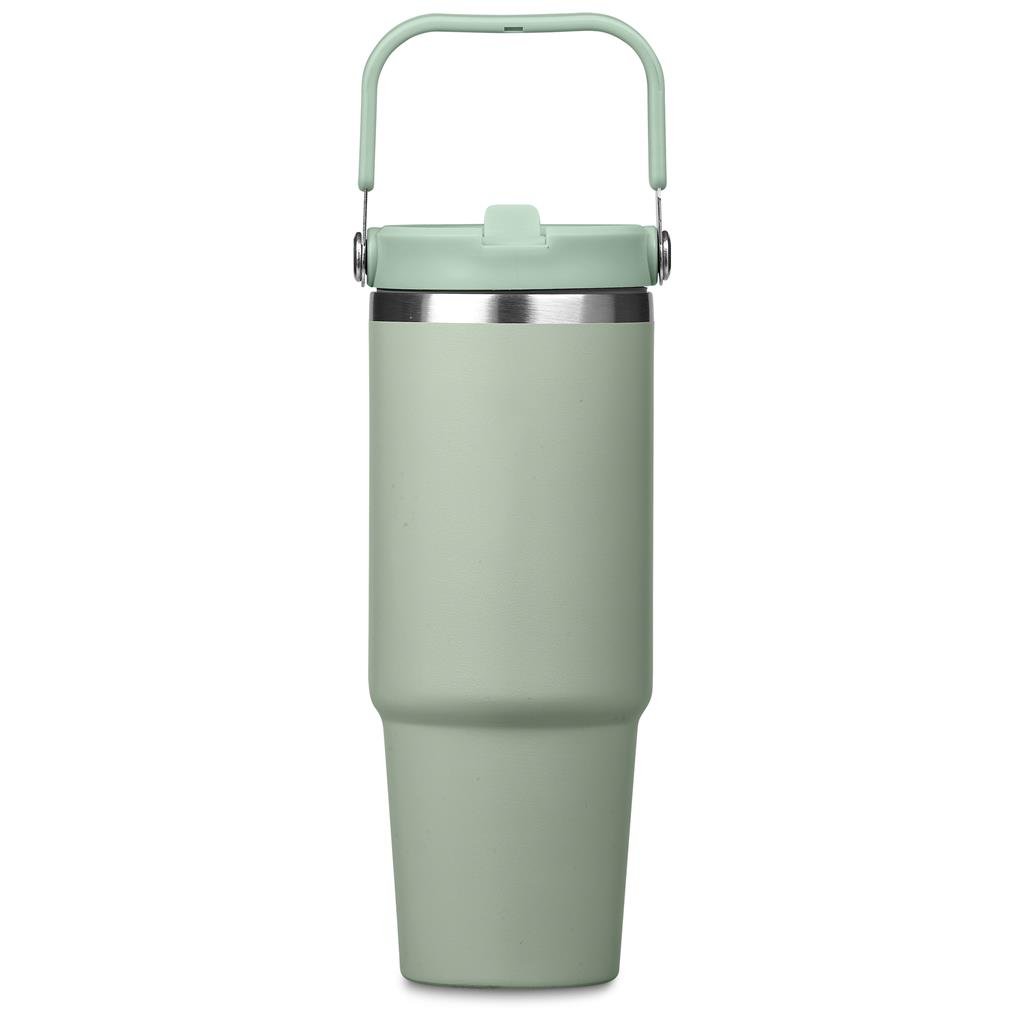 Carry your beverage care-free by the handle of this substantial 900ml tumbler. The stainless steel vacuum construction will keep your chilled beverage cold for hours. The lid has a built-in flip straw, which makes it easy to sip from regularly to stay hydrated. It’s a secure, screw-on, broad-mouth lid, so you can easily load ice into the tumbler. The tapered bottle base is designed to fit into a vehicle drinks holder.