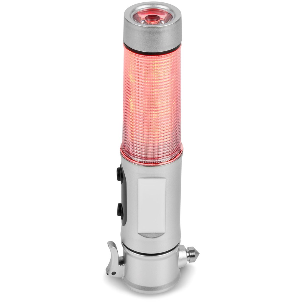 Stay prepared in a case of emergency with our handy emergency light. Features: white LED light: 18 000 MCD : emergency beacon with red flashing LED lights : safety-belt cutter :break-glass safety hammer : magnets on base allow torch to be attached to vehicle when flashing light is in use: